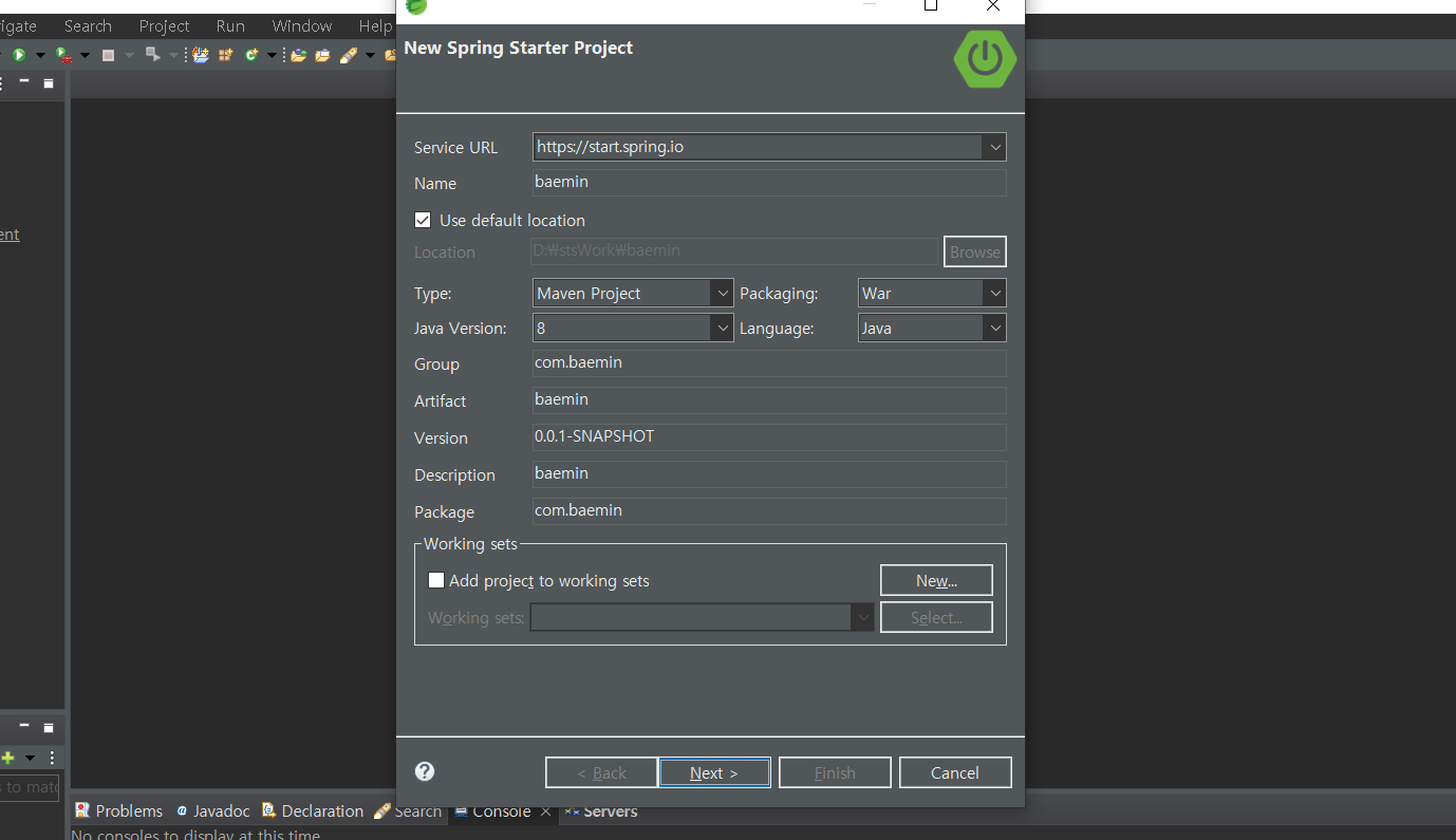 스프링부트+jsp로 배달사이트 만들기-01 프로젝트 생성
