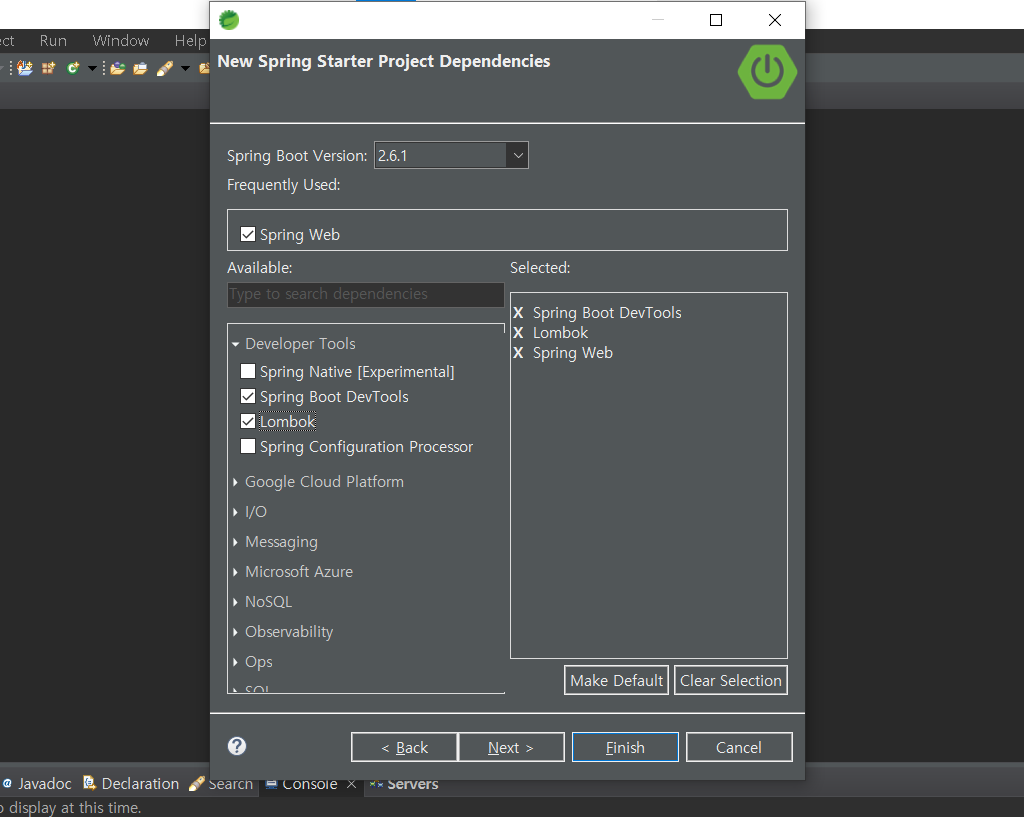 기본적으로 3가지 체크후 finish를 클릭합니다