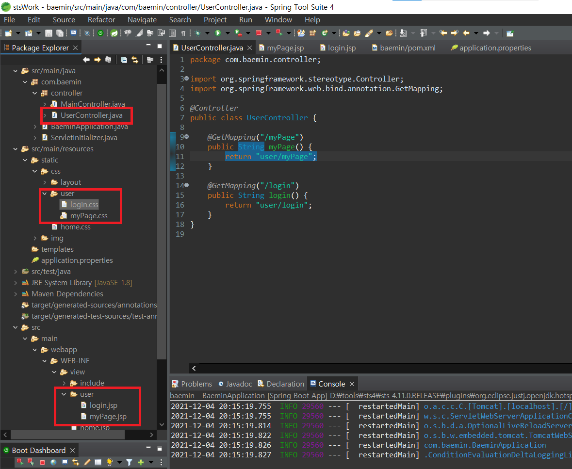 스프링부트+jsp로 배달사이트 만들기-04 mypage, 로그인페이지 만들기