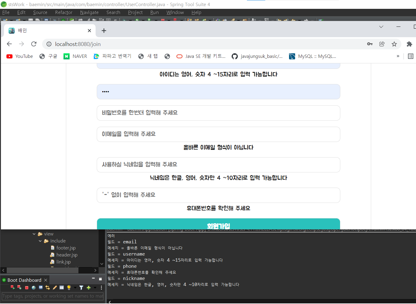 프론트에서도 유효성검사를 하기위해 join.jsp를 수정합니다