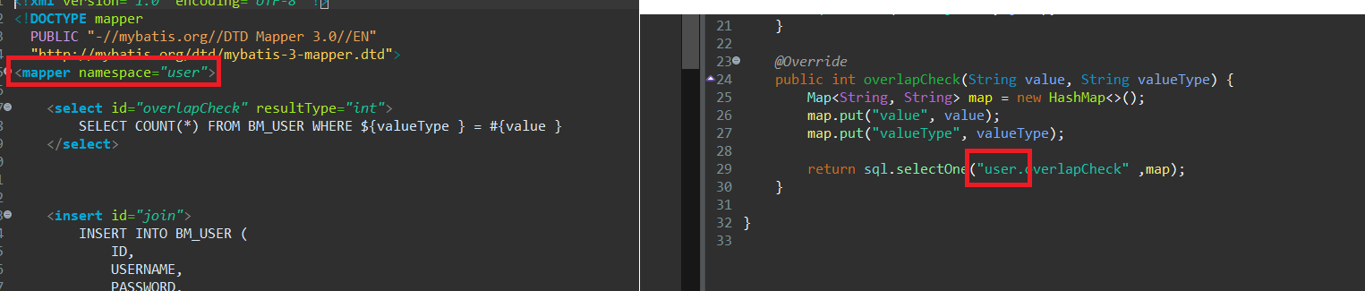 mapper의 namespace + 쿼리의 id로 호출해야합니다