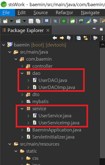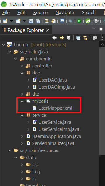 mybatis 패키지를 생성하고 쿼리를 작성할 UserMapper.xml를 추가합니다