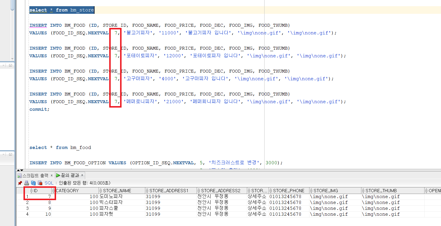 VALUES (FOOD_ID_SEQ.NEXTVAL, 7, '고구마피자', '4000', '고구마피자 입니다', '\img\none.gif', '\img\none.gif');