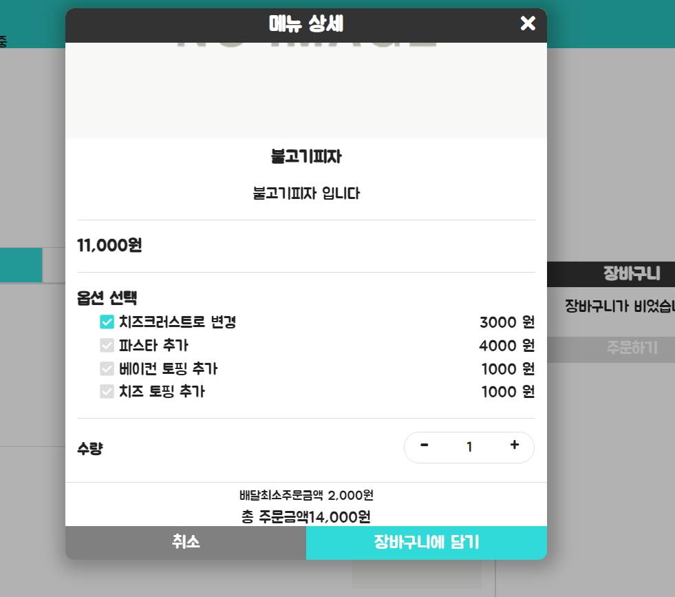 리스트 클릭시 음식의 추가옵션들을 가져올 수 있게 코드를 추가합니다