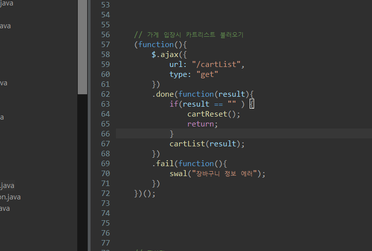 가게에 처음 입장할 때 화면에 보여줄 cartList를 추가합니다