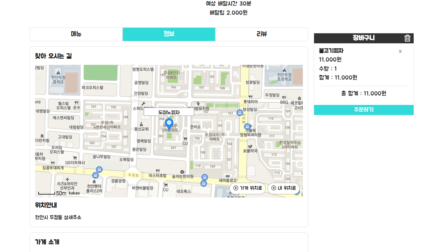 스프링부트+jsp로 배달사이트 만들기-12 가게 정보 탭