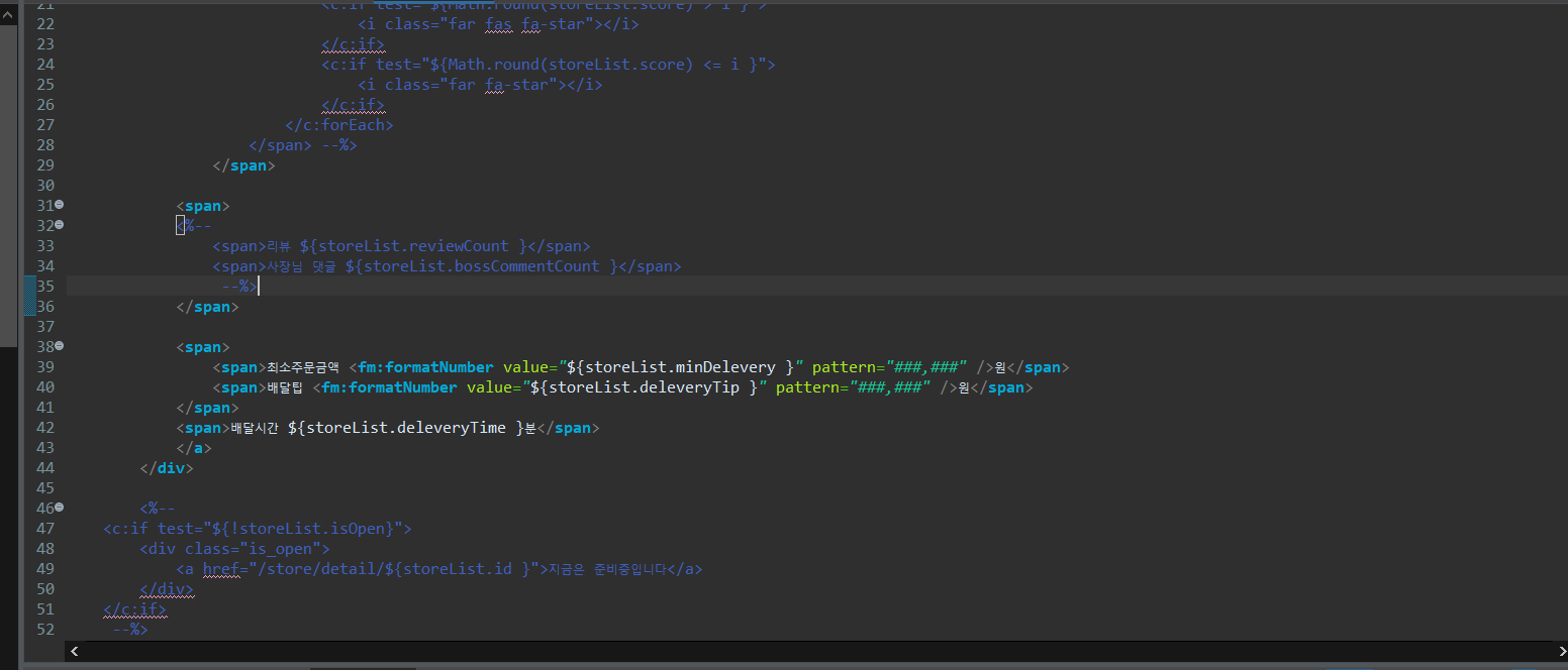 이제 store-li.jsp의 주석처리된 부분을 모두 해제합니다