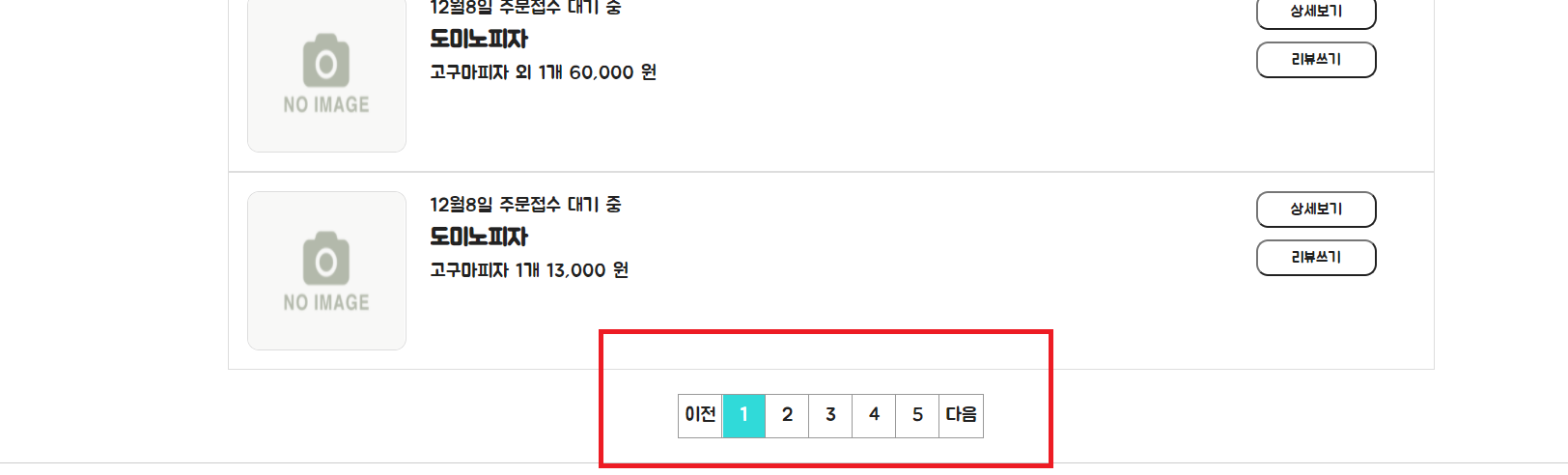 end를 5까지 했기때문에 5번까지 나오지만 목록의 수가 view를 넘을 때마다 페이지가 추가되게 변경해야합니다