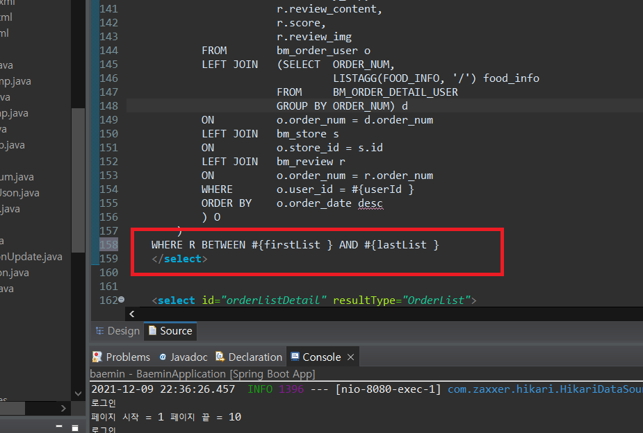 orderList메서드의 urimapping을 페이지 이동을 위해 하나 더 추가 합니다