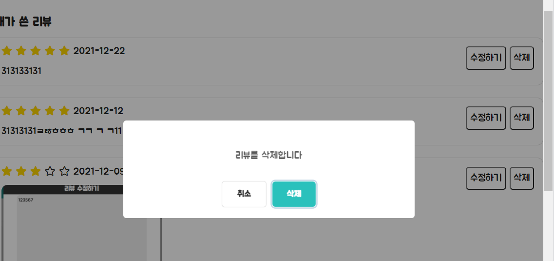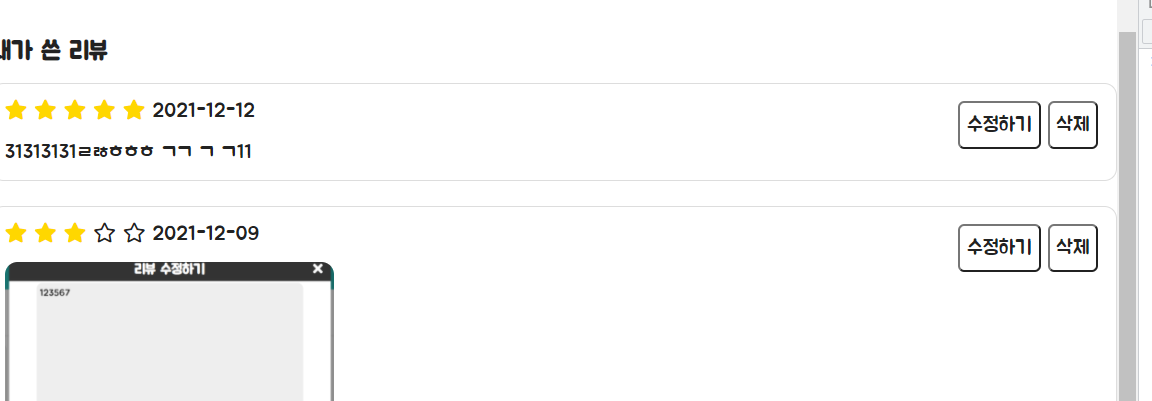 리뷰 수정하기는 기존의 StoreController의 reviewModify() 메서드를 사용하기 때문에 orderList 페이지로 이동하게 됩니다