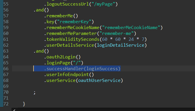 시큐리티 설정 파일에 아래 로그인 성공시 설정을 추가합니다